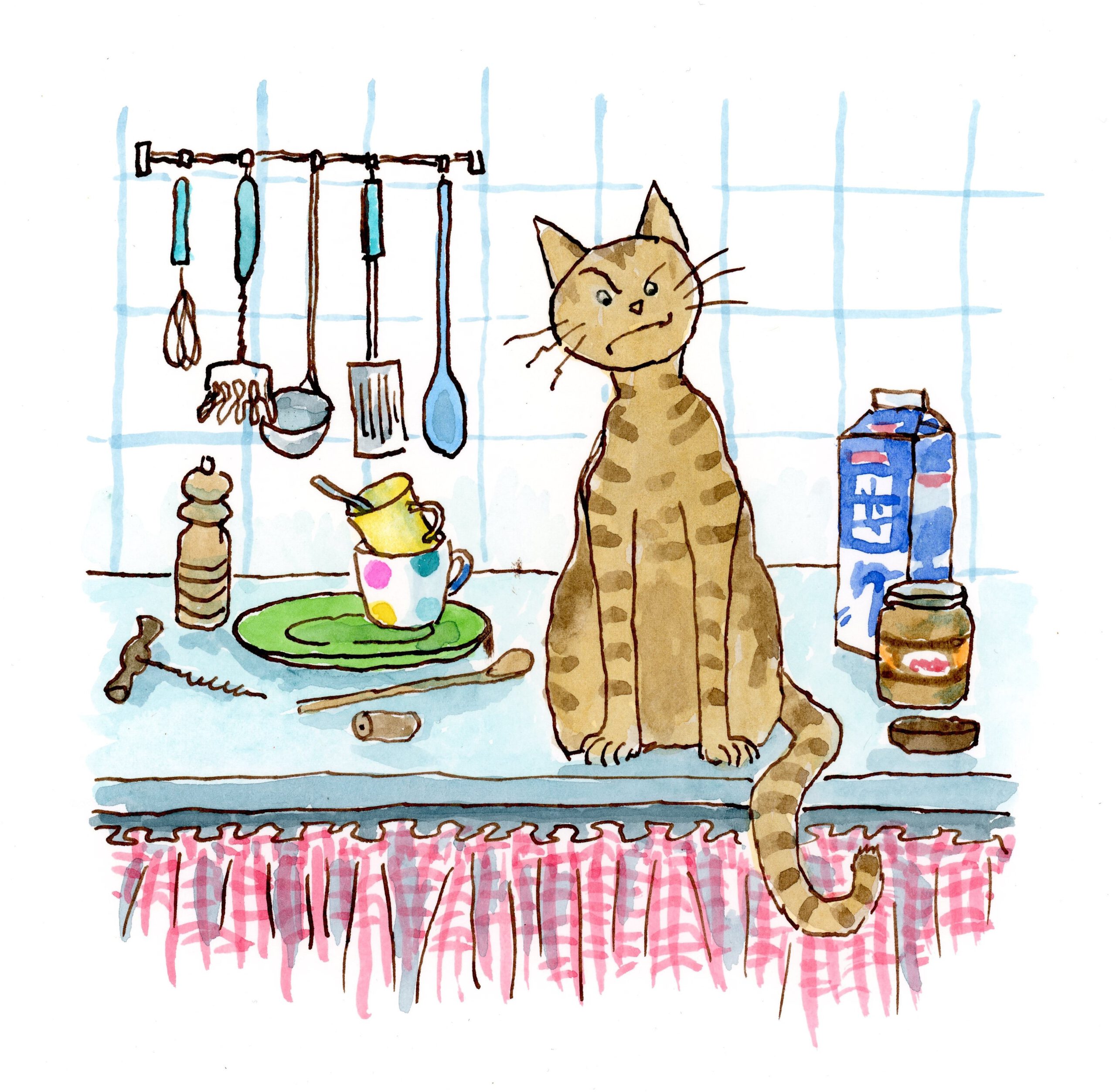 Na twee heerlijke weken Provence kwam ik thuis samen met mijn vriend. Ik was blij Tijgertje weer te zien. Meteen viel mij op dat ze een tikkeltje verwilderd uit haar ogen keek. Van mijn opvoeding bleek inderdaad niets over. Onbeschaamd sprong ze op streng verboden terrein: het aanrecht. Met een blik van ‘what the **** kom jij hier doen?’ staarde ze me aan.